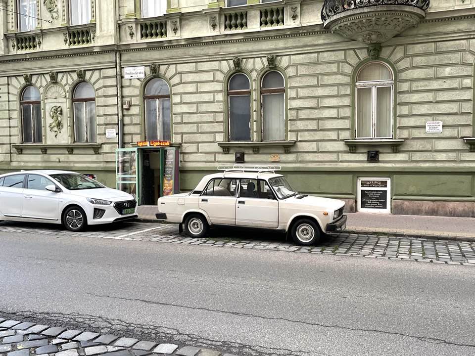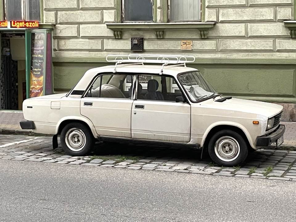 Yes, that’s just another car here in Hungary. Or, is it? Actually, there’s a richer, more complex story here. If you’re a bit of a car buff, you might recognize this as a Russian-built Lada from the late 1970s or early ’80s. If you look closely, you’ll notice little bits of grass growing through the cobble stones around the car. It hasn’t been moved all the time we’ve lived here. I know that because it rests across the street from the #74 bus stop we frequent. It’s always there with its quiet, but happy, disposition.